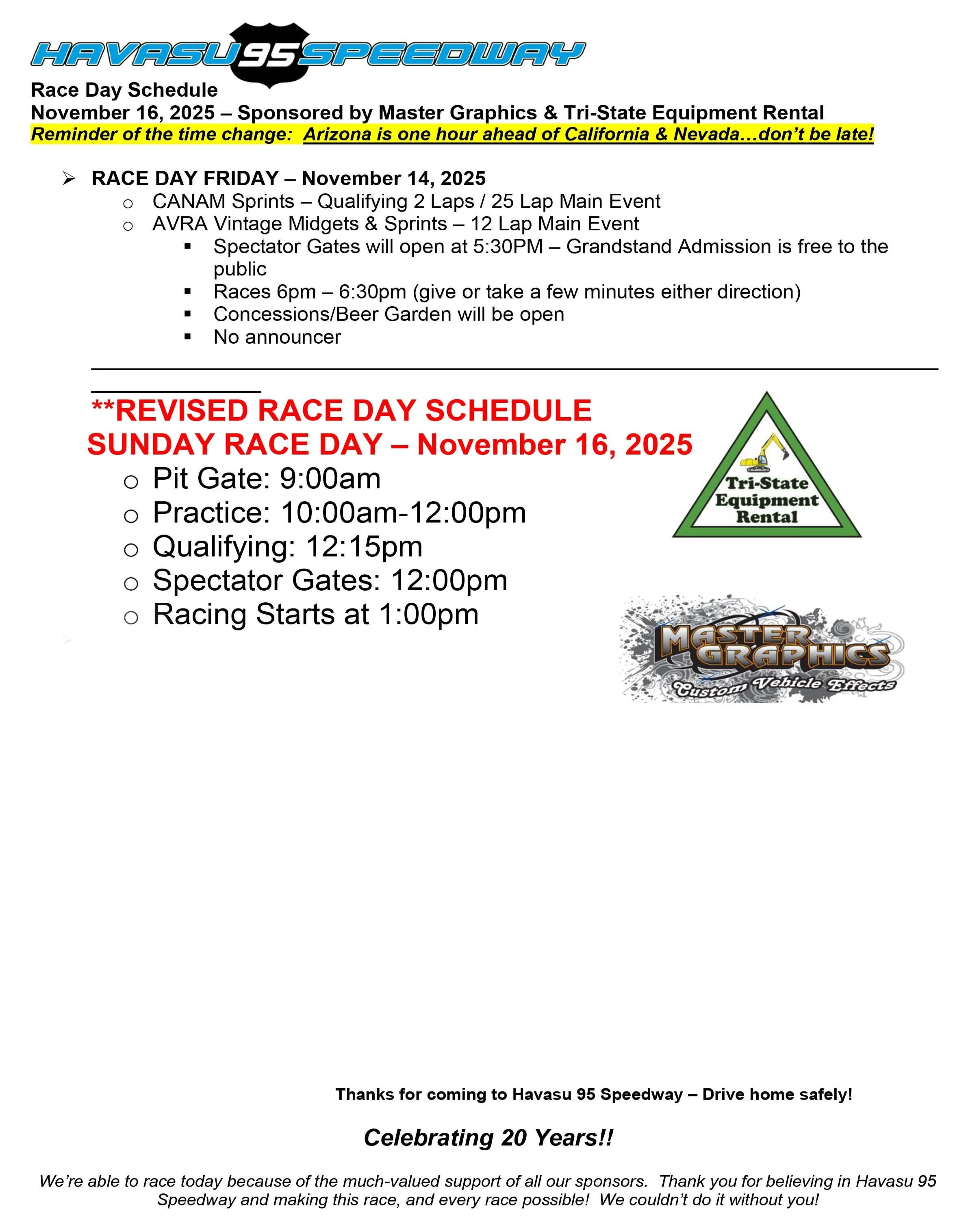 Thank you for rolling with the weather with us. We’re looking forward to a great day of racing and hope to see everyone on Sunday. Stay safe and we’ll see you at the track!